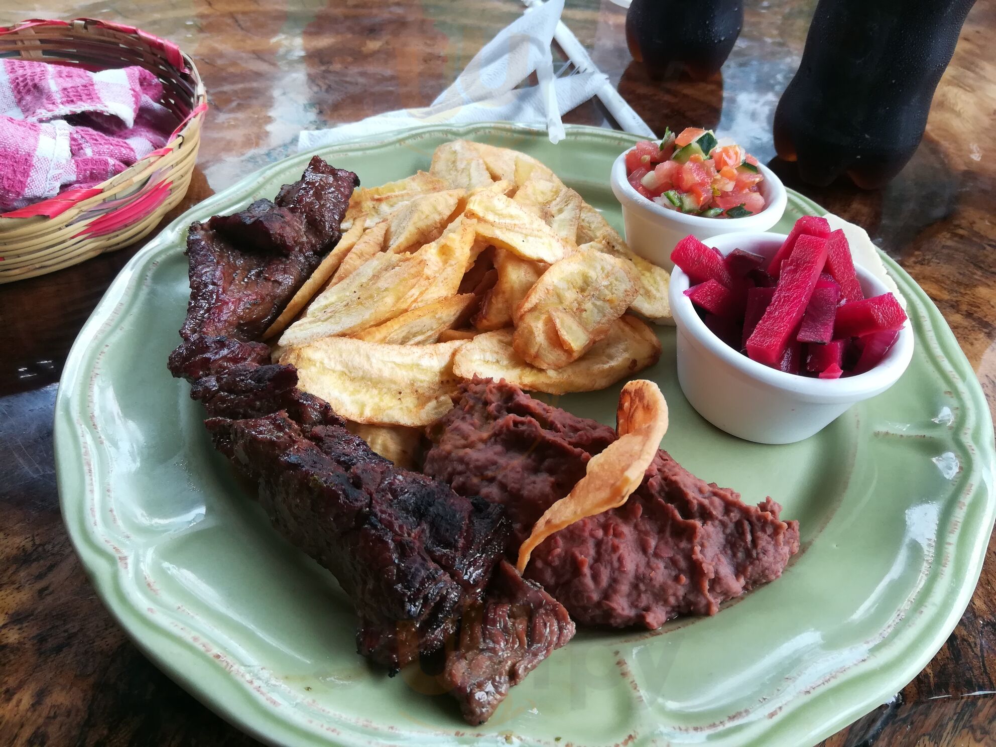 Por los momentos solo se puede comer al aire libre, los asados son deliciosos y a buen precio. La parrillada para 2 personas pueden comer 3 personas sino comen mucho. Excelente sabor de la comida y el servicio al cliente 👌.